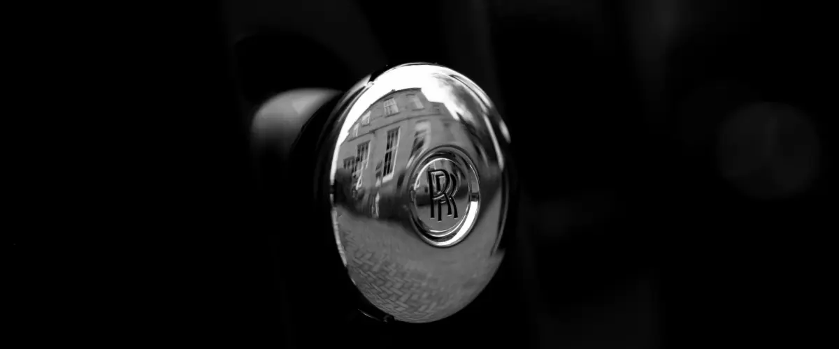 Foto de Karam Alani: https://www.pexels.com/pt-br/foto/close-up-do-rolls-royce-detalhe-em-preto-e-branco-29308526/
